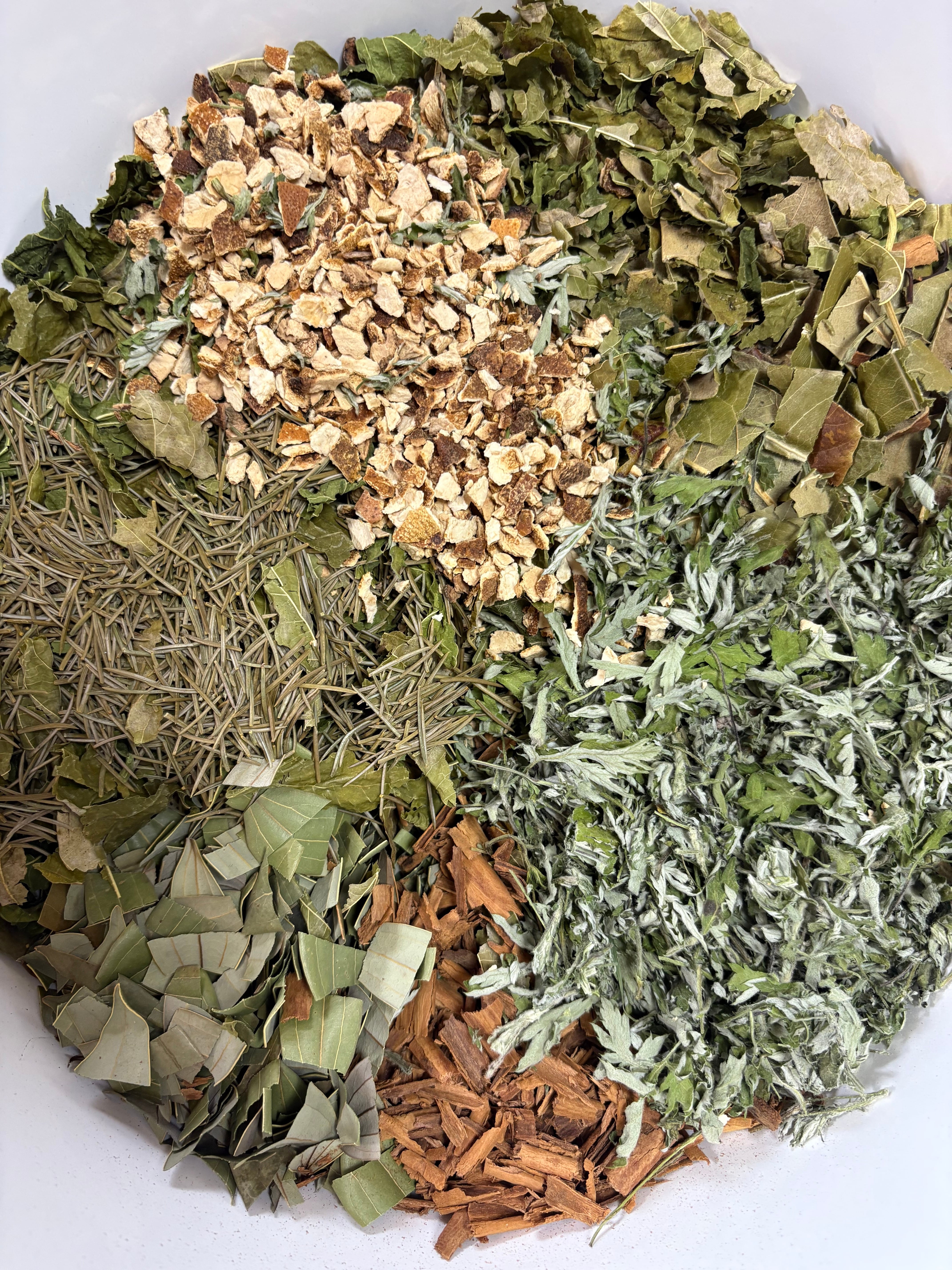 ブレンド内容:枇杷の葉(山梨)、トウヒ(山梨)、桑の葉(山梨)、オレンジピール、シナモン、ニッケイ(千葉県鴨川)、ヨモギ(千葉県鴨川)